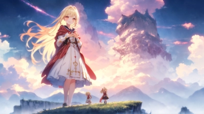 full body,(best quality:1.2),(ultra Details extremely scrutiny exaggerated anime style background:1.2),(ultraDetails extremely scrutiny exaggerated fantasy doll-like character:1.2),8k,(pencil fantasy fluorescence digital cg texture vfx effects:1.2),vivid contrasting portrait,with healthy pretty makeup,adorable anime round face,(light golden hair:1.1),cute hair,waving in the breeze long hair,embroidery light brown red cape school wear,plaid skirt,prairie skirt,smile gently,stand,(colorful nostalgic parallel anime blessing mountain background:1.2),(gradation fashionable illustration Gaussian noise with vfx effects:1.2),(gradation Gaussian noise with sfx effects:1.2),(dream romantic with CGI effects:1.2),(calm down Gaussian Blur noise fantastic kawaii anime like VFX SFX CGI special effects:1.2),<lora:add_detail:0.2> <lora:sharpen-soften:-0.2>
