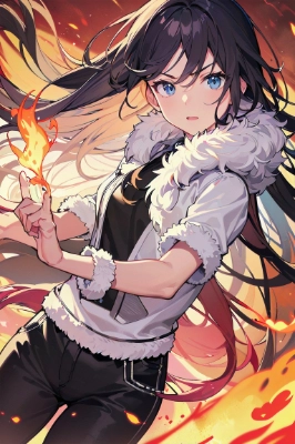 masterpiece, best quality, extremely detailed, anime,Girl,ice magician,narrow waist, palm covered in ice,fantasy character, casual, (Blizzard from hands;1.8),(ice fist;1.5),partial armor,(red long hair;1.2),wind, upper body,glare,fur,white pants,dynamic pose,ice foreground, red long hair,open right hand ,(ice blade;1.6),flying ice particles,
