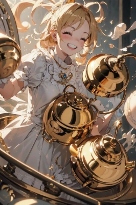 (Highly detailed fine touch:1.2), (Absurd line art,Watercolor Shading,Aesthetic art,light toned:1.3), (top-quality, Best Quality, Extremely detailed, Absurdity - Resolution,8K-resolution,raw,Hi-Res,Realistic,Official art:1.2),/*Holoron*/, ((Colorful macarons:1.3),Solo,It writes a detailed golden laughter kettle:1.3,Like a kettle that laughs,Look at the laughing kettle,grin,half-opened mouth), (subjective perspective).