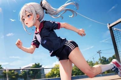 very cute female child,10 yo,white hair,bangs,medium hair,blue eyes,flat chest,