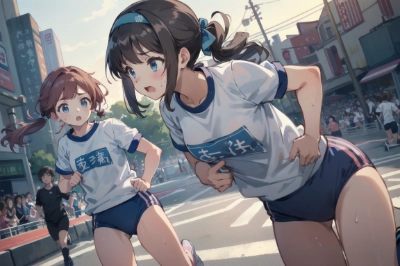 マラソン大会(ロング髪/黒髪おさげ/茶髪ポニテ)@旧体育の日