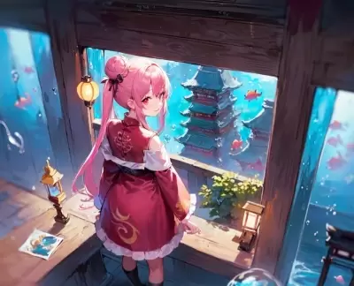 from_above, (mini_scape:1.2), (colorful_ink_cloud:1.1), quarterview, (standing_on_mini_base), standing_on_cliff, (kawaii), (flat color:1.3), (RGB Splitting:1.3), (1girl:1.3), chibi, pink hair, long hair, doyagao, chinese dress, hair bun, :d, lo-fi hiphop, chillhop, fantasy, (east asian architecture:1.2), ryuuguujo