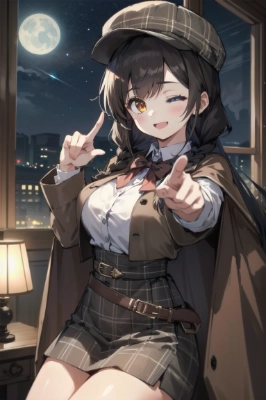masterpiece, best quality, extremely detailed, 1wonan, solo, 20yo, slender, small breasts, (holding note:1.5), BREAK,teacher, pink blouse, red purple waistcoat, dark purple pencil skirt, ribbon, BREAK,beautiful detailed face and eyes, smug, blond pink hair, long hair, long hair flaps, messy hair, hair between eyes, bangs pinned back, purple eyes, hairclip, glasses, (one eye closed:1.2),BREAK,classroom,