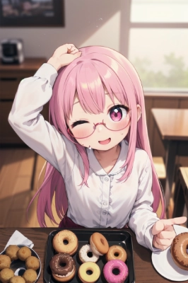 masterpiece, best quality, extremely detailed, anime, 1 girl and lots of tomatoes, small breasts, small hip, thin body, pink hair, vampire costume, black coat, pink eyes, red rim eyeglasses, fang, sitting on coffin, crossing legs, holding glass cup, tomato juice in cup, arm up, smirking, many tomatoes on floor, from above ,