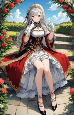 One female Lady Lord, dignified and handsome face, long silver hair, crimson eyes, mid-chest, 23 year old lady:1.1, a seductive wink:1.5, a seductive smile, noble expression, noble fabric, aristocratic wife\