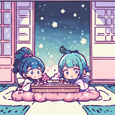 masterpiece, best quality, extremely detailed, anime, kibi dango, sweet dumpling made with millet flour, girl, bobcut, long sleeve, blue hair, wink, original character, my child, personification, chibi character, deformed, Japanese style, colorful, cooking, blue sky, morning, autumn, happy, waving,