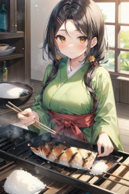 masterpiece, best quality, extremely detailed, (steampunk:1.3), 1girl, solo, 18yo, large breasts, nun, blue nun clothes, apron, put hands on hips,BREAK,beautiful detailed face and eyes, (smile:1.2), blush, sweat, purple hair, short hair, long hair flaps, red eyes,BREAK,(salt:1.5), (salt on grill:1.5), grill, kitchen, (steam:1.2),,,,,