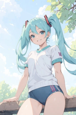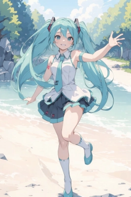 ((masterpiece)), ((high resolution)), ((best quality)), (ultra-detailed), anime, ((extremely detailed)), 4K, (8K), best quality, dynamic angle, (beautiful), solo, (hatsune miku), school classroom, smile, school uniform,