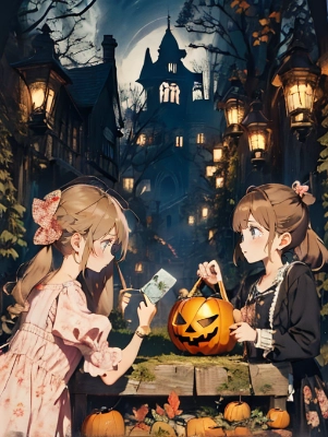 (2+girls, multiple girls:1.2), over looking , sleeping, hood , wavy bob hair, elf, babushka , gradient hair ,blue eyes,