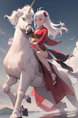 (1male:1.75), handsome face,(ride on white unicorn:1.4), ((perfect hands)), ((serious)), (muscular breasts), (detailed strong willed eyes:1.3), sandals, (male is no hair, blad head,grow deer horns from tophead:1.3), 1handsome male, his name is Sentokun,(blad head,no hair,detailed deer horns:1.3), (wear Hanfu:1.3), (Round ear:1.3), (3d rendering there:1.3), floating, beautiful detailed eyes, (spine), lustrous skin, strong wind, wind, dynamism, power, realistic, sprint, multiple angle, gallop, (Mountain, Temple), (subjective perspective), (light-shadow symmetry:0.75),(particle light,natural light,light rays,reflection,shadows,ray tracing:1.0), detailed and delicate costumes,graphite, partially colored, spot color, (flip the whole horizontally,red image:1.3), (Monochromatic colors:1.4),