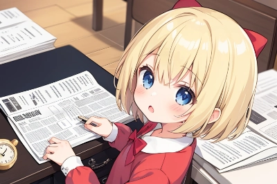 masterpiece, best quality, {{{{{newspaper}}}}},1girl,best quality, official illustration, sleeping, lying in bed, loli,blond hair,short hair,hair bow,red bow,{{hair red ribbon}},blue eyes, bedroom, bed, comforter, white walls,, cute, kawaii, , comfy, sleepy, covered in blanket,pajamas, cute