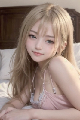 masterpiece, best quality, extremely detailed, perfect face, a girl, very cute face, idol, blonde hair, long hair, head on the pillow, negligee, (lying on the bed, on side:1.5), (shyly smile:1.2), shyly eyes, (blush:1.5), (close up face:1.4), (close to viewer:1.3), face focus, at morning,,,