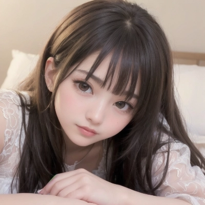 masterpiece, best quality, extremely detailed, perfect face, a girl, very cute face, idol, brown hair, long hair, wavy hair, head on the pillow, negligee, (lying on the bed, on side:1.5), (shyly smile:1.0), shyly eyes, (blush:1.5), (close up face:1.4), (close to viewer:1.3), face focus, at morning,,,