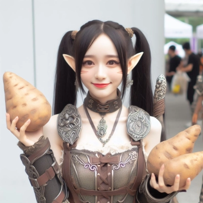 ある日、人間界にやってきたエルフの女戦士リンディスは、冒険の旅の途中で美しい風景の中、ひとつの畑を見つけました。その畑には、立派な芋がずらりと並んでいました。 「おおっ!これは美味しそうな芋だ!」 リンディスは興奮しながら畑に近づき、芋を一つ掴み取りました。