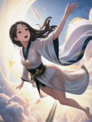 1girl, solo,slender, brown eyes, ponytail, small breasts,black hair,apron,