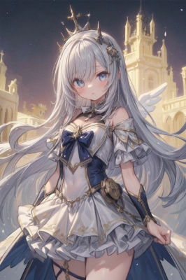 (masterpiece), (best quality),(ultra-detailed),(illustration),(extremely detailed),(perfect anatomy),(super detailed skin),(detailed),(beautiful detailed eyes),1girl,solo,(aqua (konosuba)),blue eyes,blue hair,blue shirt,blue skirt,bow,bowtie,green bow,green bowtie,breasts,detached sleeves,frilled skirt,frills,bare shoulders,long hair,single hair ring,thighhighs,hand fan,holding,smile,cowboy shot,outdoors,blue sky,looking down at viewer, from below,<lora:flat2:-0.8> <lora:hairdetailer:1> ,,