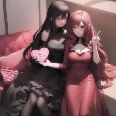AND ((ultra-detailed)), ((illustration)), 2girls, black hair, red eyes, listening music, head phone, sleepy, lean the other girl, hand on bench