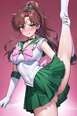 masterpiece, best quality, illustration, ultra-detailed, finely detail, highres, 8k wallpaper, perfect dynamic composition, beautiful detailed eyes, 1 girl, (blue panty:1.2), cowboy shot,<lora:sailor_moon_v1:1> aausagi, double bun, twintails, parted bangs, circlet, jewelry, earrings, choker, red bow, white gloves, elbow gloves, blue skirt, ( standing split:1.4), (blush), (smile)