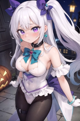 a very cute and pretty and beautiful girl,17y old,(white color a lot of frill and jewelry Magical girl:1.5). Ruffled jeweled sleeves. (Ruffled jewelry tights:1.1). Frill jeweled waist ornament. Ruffle jeweled gloves. Ruffled jeweled fitsuit. A fusion of ballerina costumes, magical girl costumes, (idol costumes), virtual YouTuber costumes, leotard, and PreCure. Ruffled jewel waist suit. Jewelry hair ornament. ribbon. (Halloween street). (Red slave collar: 1.8). Heart-shaped jewel bangle. Heart-shaped garter ringornament. (Solo :1.5). standing, tight. (green long hair). ttwo side up hair. big breasts,She is degraded into a sexual slave . <lora:lightline:0.45> > cinematic angle. to prostitute. (forced kissing:1.5). close-up face. (sad tears). cowboyShot.,,