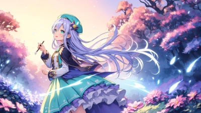 (WDR:1.5),(HDR:1.5),(Photoshop quality:1.5),(noise:1.5),full body,(best quality:1.2),(ultra Details extremely scrutiny exaggerated cute amazing kawaii anime kawaii cute composition quality:1.2),(ultra Details extremely scrutiny exaggerated kawaii anime like style background with VFX SFX CGI special effects:1.2),(ultra Details extremely scrutiny exaggerated fantasy chic real doll-like sepia pastel character with VFX SFX CGI special effects:1.2),8k,(calligraphy brush fantasy fluorescence digital cg blurred texture chic with VFX SFX CGI special effects:1.2),healthy pretty anime style makeup,adorable anime kawaii pretty natural kawaii face,natural young body finger,clear blue emerald eyes,(light pure purple hair:1.1),cute hair,waving in the breeze long hair,embroidery blazer suit,prairie skirt,smile gently,silk beret,student,boots,from side up,cliff,shimmering,stick rod,magic circle,phantom beast,unicorn,caress,(gorgeous delicious spectacle Excitement Awe Joy fantastic garden diorama mystic mystery background:1.2),(magical flash with vfx effects:1.2),(surrounded by kindness with sfx effects:1.2),(spectacle romantic with flashy CGI effects:1.2),(chic never fade color:0.2),<lora:add_detail:0.2> <lora:sharpen-soften:0.2>