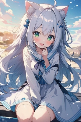 1girl,whole body, dynamic angle,shiny_skin, girl,female, long bronde hair, shiny hair,walking, ahoge, snowflakesdetailed cute anime face, light smile, bright eyes, (cat_ears), green eyes, white skin, one piece,country side, extremely detailed CG unity 8k, absurdres, highres,,