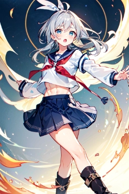 masterpiece, best quality, extremely detailed, anime, girl, skirtnakano miku,go-toubun no hanayome,brown hair,medium hair,blue eyes,hair between eyes,headphones around neck,medium large breasts,pantyhose,light blue cardigan, green skirt, tights, pleated skirt, 1girl,ookami mio,holo live,black hair,long hair,yellow eyes,black wolf ears,sidelocks,closed mouth,medium breasts,standing,animal tail, the medieval, Principal, synth wave, feet out of frame, soles, walking motion, sliver and broken body, obesity, man and wife, teenage girl, long hair floating everywhere, best detailed hair, parted bangs, four ponytail, single braid, red streaked hair, disreveled hair, huge ahoge, extremely detailed eyes and face, angry face, furrowed brow, beautiful eyes, detailed fox ears, parted lips, Huge claws, breasts, thigh gap, black eyes, Authentic skin texture, stone accessory, bunny hair ornament, mask, detached collar, wings, stuffed animal, underwear, puffy sleeves, pantyhose, leg ribbon, dissolving dress, open coat, black legwear, Black markings print cloth, green Clothes, golden boat, a cloudy sky, background, smoke, a small black, best masterpiece, highres, ultra-detailed,,