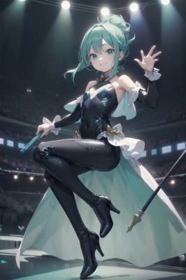 wink, masterpiece, best quality, highres, 1otoko no ko, solo, yellow cardigan, (brown pleated skirt), かわいい, flat chest, aqua hair, aqua eyes, half updo, smile, bedroom, one eye closed, hug a teddy bear<lora:flat2:0> <lora:hairdetailer:0.5>,,,,