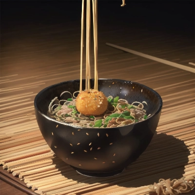 masterpiece, best quality, extremely detailed, anime, (1woman:1.5), solo, (holding chopstick:1.2), standing,BREAK,office worker, white shirt, black jacket, black pencil skirt,BREAK,beautiful detailed face and eyes, expressionless, black hair, short hair, forehead, glasses, black eyes,BREAK,(soba restaurant:1.5), (Soba in bowl:1.2), (bowl on wood table:1.2),