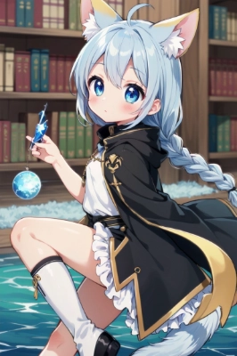 masterpiece, best quality, extremely detailed, animelong focus, imid shot, hdr, own hands clasped, Burn oneself in flames, young girls, very long hair, big hair, hairs between eyes, quad tails, side braid, white hair, multicolored hair, beautiful detailed hair, huge ahoge, extremely beautiful detailed anime face and eyes, light blush, thick eyebrows, glowing blue eyes, detailed fox ears, parted lips, robot arm, small breast, stomach, evil paws, heterochromic, white skin, bowknot, blue hair ornament, kunder-rim eyewear, neck ribbon, Dragonwings, rope, Iridescence and rainbow dress, ribbon-trimmed sleeves, the lower body is a fish, Crystal shoes, extremely clothes, bustier, highly detailed beautiful fishtail, asa no ha pattern print cloth, cyan color scheme Clothes, messy cyberpunk room, sand, Floating ashes, just like silver stars imploding we absorb the light of day, no shadow, the best quality, Gorgeous and rich graphics, wallpaper,,