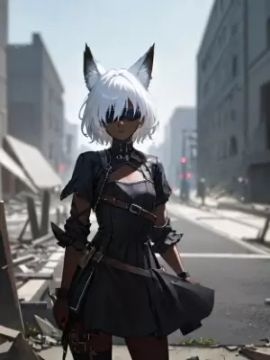 (focus on face:1.4), (masterpiece:1.2), (best quality:1.2), (novel illustration:1.1), (solo:1.2), brave female, (muscular female:0.5), (dark-skinned:1.3) female, (simple japanese miko:1.2), fox ears, (white hair), (blindfolded:1.2), small chest, detailed face, extremely detailed, (blurry:1.3),