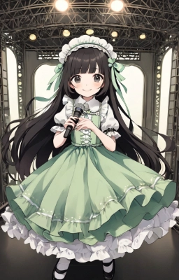(((very longest hair))),black hair, smile,straight Hair,hair ribbon,mintgreen stripe,Black Eyes,flat chest,straight Across bangs,princess Cut, Very Long Sideburn,roundry Head,Droping eyes,(((solo))),cute,Meekness,Bob Cut,long back hair,12 years Old,Kimono,japanese living room,night,Egg rice,night,miso soup,