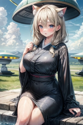 girl,RAW photo, best quality,realistic, photo-realistic, best quality ,masterpiece,an extremely delicate and beautiful, extremely detailed,2k wallpaper, Amazing, finely detail, 8k wallpaper,huge filesize , ultra-detailed, highres, extremely detailed,realistic, 8K, Ultra-High Definition, highest quality, ultra high resolution, (realistic:1.3), High quality texture, (2girls:1.1), kimono, shawl, cat ears, cat tail, medium breast, blond hair, pattern, (tan:1.2), wet hair, , wet skin, (egg-cooked rice:1.4), daytime, <lora:flat2:-0.7> <lora:sanDka2:0.2>Japanese-style room, porch,japanese garden view:1.1),(tatami:1),,,,,,,,,,,,,,
