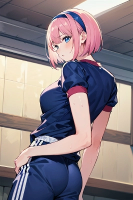 (masterpiece, best quality, ultra high res, 8k, perfect anatomy, extremely detailed), ((touhou project)), (((Himekaidou Hatate)))BREAK(1girl, cute girl, shiny body, shiny skin, medium breasts), (brown hair, curly hair, twin tails, purple ribbon, brown eyes), (purple yamabushi hat),BREAKlight pink blouse, black tie, black and purple checkered miniskirt, black knee socks,