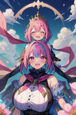 masterpiece, best quality, extremely detailed, anime, a young woman wearing a pink coat and hat on catwalk street, 1girl, solo, outdoors, smile, braid, hat, brown eyes, open mouth, looking at viewer, skirt, twin braids, pink gloves, blush, pink headwear, pink skirt, white sweater, long hair, cable knit, sweater, :d, bow, long sleeves, bangs, beanie, blurry, blurry background,