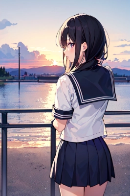 masterpiece, best quality, extremely detailed, anime, 1girl, black hair, serafuku, orange cat, white nose,
