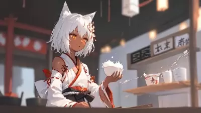 (masterpiece:1.2), (best quality:1.2), (novel illustration:1.1), (solo:1.2), brave female, (muscular female:0.5), (dark-skinned:1.3) female, (simple japanese miko:1.2), fox ears, (white hair), small chest, detailed face, extremely detailed, (blurry:1.3), traditional festival music, (smoke atomosphere:1.2),