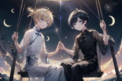 Gay Couple, Adult Male, Sweets Buffet, Masterpiece, Top Quality, High Quality, Detailed, Super Detailed, Super Detailed, Very Detailed, Beautiful, Full HD, 16K, Smile, Green Hair and Blue Eyes, Small Ponytail, Blonde and Green eyes, checkered blazer uniform, short hair that covers one eye with bangs,,