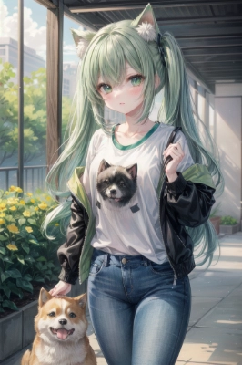 (background: standing (a lot of (tip long stick))), masterpiece, best quality, extremely detailed, anime, 1girl, 13 yo, light green hair, very long twintails, wavy hair, cat ears, pale green eyes, smug face, autumn colored yukata, playing (the plate spinning), inside tatami room, <lora:flat2:-0.65> <lora:hairdetailer:0.7>,