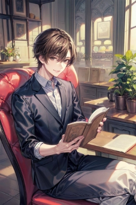masterpiece, best quality, extremely detailed, anime, skirt <lora:flat2:-1> <lora:hairdetailer:0.7> , a cool boy, good-looking guy, handsome man, bobcut, long sleeve, green hair, blue eyes, ikemen, cafe, healing, , a cool boy, good-looking guy, handsome man, bobcut, long sleeve, green hair, blue eyes, ikemen, cafe, healing, drinking, sittinghanburger steak,
