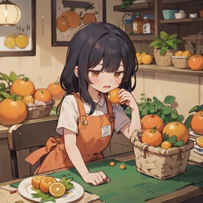 chubby belly, solo, girl, eating, holding, tower, piled up, sullied body, dish, empty plates, stain body, spilt on body, spilt foods, stained body, printed clothes, tower, saucer, small breasts, navel, puff up cheeks, stuffing foods small eyes, restaurant, happy, collarbone,