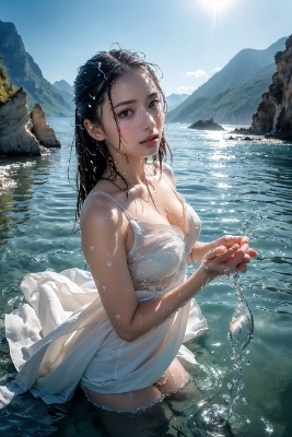 (magical,beautiful and delicate water, wet,mana water, flying water,splash, floating, Hair with water effects,underwater,Flower, petal,delicate sunlight shadow :1.4)