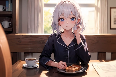 very cute female child,10 yo,white hair,bangs,medium hair,blue eyes,flat chest,