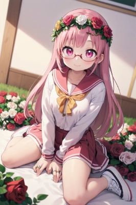 masterpiece, best quality, extremely detailed, anime, (1girl, yellow casual dress, pink long messy hair, pink eyes, small breast, red rim eyeglass, smile, looking up:1.4) , ((juggling with mandarin oranges)) , 2 mandarin oranges is floating, grocery store , upper body, from front, wide shot <lora:boldline:0> ,