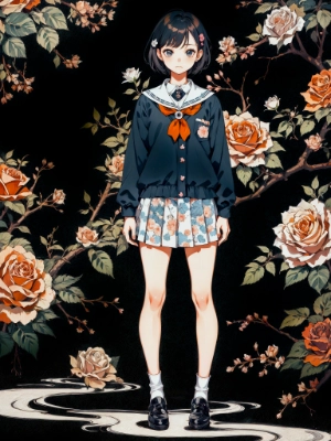 absurdres, highres, (extremely detailed fine touch:1.3), (hard light, studio light, light rays, dappled light, reflection, shadows, ray tracing:1.0), ///, anime style, girl crouching with an umbrella, black cat, city, ray of light, rain, gentle light