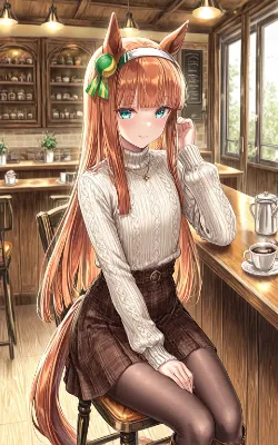 (small breasts),(hair_Crescent Moon, left bang hair ornament:1.2),drink cup coffee,