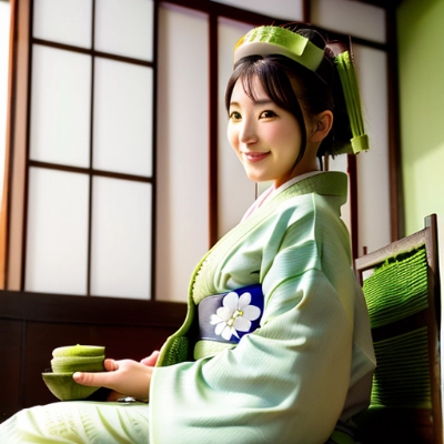 Female, 20 years old, ((smile)), (((most huge breasts))), ((kimono)), Japanese tea room, (((((sitting straight and making matcha))))),