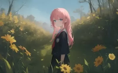 (pink hair, blue eyes: 1.7), (disheveled long hair: 1.3)