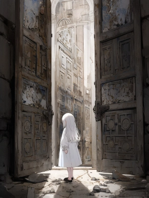 silver hair cute girl wearing opal like folk costume with lace and frills, Delicate digital art, full body, high fashion, frills, iridescent, rainbow, holographic, glittering diamonds, Paris collection