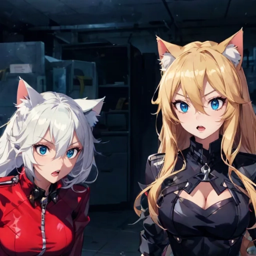best quality, unity 8k wallpaper, super fine illustration, breaking the safe, breaking the safe, A female phantom thief with cat ears in black tights and a leotard tries to unlock the door of a strong safe using tools.