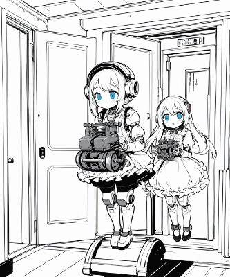 (2 beautiful cute robot girls),(mechanical joints and cable)+,(best quality),(extremely detailed),masterpiece,cinematic,atompunk, long fingernails, noise, realistic, tights, distorted, distorted background, lowres, worst quality, low quality, normal quality, low quality, bad anatomy, bad hands, text, error, missing fingers, extra digit, fewer digits, cropped, jpeg artifacts, signature, username, missing fingers, extra digit, fewer digits, cropped, missing fingers, missing arms, long neck, humpbacked, disfigured, malformed, mutated, multiple breasts, three legs, Missing limbs, three arms,chibi,android, frill, frills,